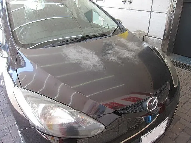 マツダ デミオ ボンネット ルーフ 色あせ クリア剥げ キズヘコミ修理│大阪市平野区 鈑金塗装