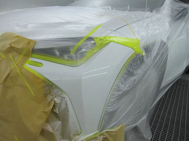 作業部分以外に塗料が付着しないように、専用のペーパーでマスキングをします。その後は、車両の色に合うように調色し、何度も塗り重ねていきます。時間のかかる作業ですが、仕上がりがキレイになるよう、丁寧に作業していきます。塗装が終われば最終磨きをして完了です。