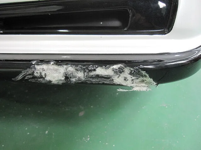 フロントバンパー・フロントリップスポイラーの擦り傷を鈑金塗装によるキズ・ヘコミ修理で直します。