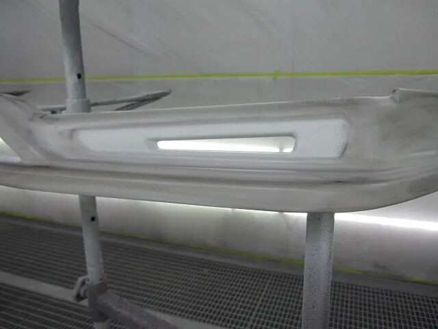今回修理のフロントリップスポイラーはFRP樹脂製のため、FRP樹脂の補修を行ない、全体を修理していきます。