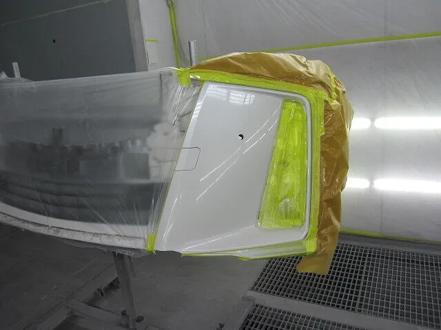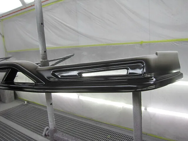 当店は、チリやホコリを遮断できる専用のプッシュプル式塗装ブースにて作業を行なうため、高クオリティーの塗装を実現いたします。そのため異物が混入する心配はほとんどありません。塗装後もしっかりと焼付け、乾燥させてからフロントバンパー・リップスポイラーを組み付けて最後に専用ポリッシャーで磨き上げて完成です。