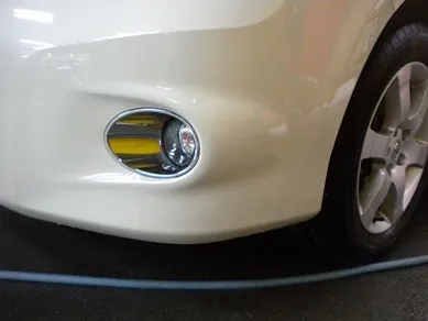 さっそく、フォグランプのメッキカバーを取り外して作業をしていきます。