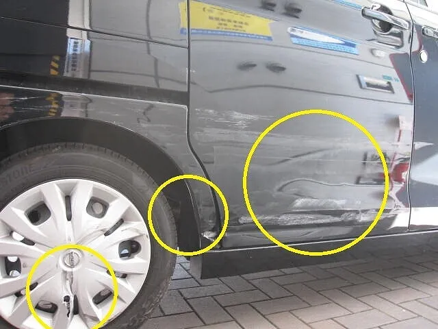 日産 ルークス フロントドアパネル リアドアパネル クォーターパネル キズ・ヘコミ修理│大阪市平野区 鈑金塗装 保険修理