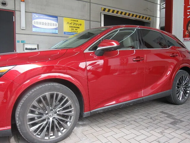 大阪市平野区にお住まいのお客様より、レクサス RXのフロントドアの鈑金塗装(キズ・ヘコミ修理)のご依頼をいただきました。