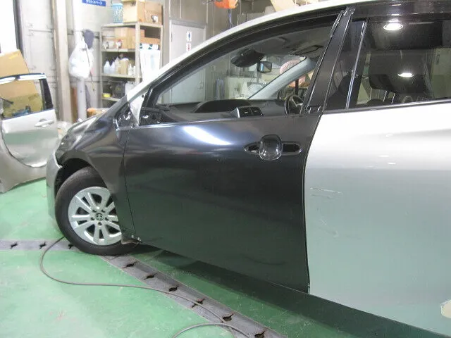 トヨタ プリウスの左側面事故の鈑金塗装(キズ・ヘコミ修理)が完了しました。