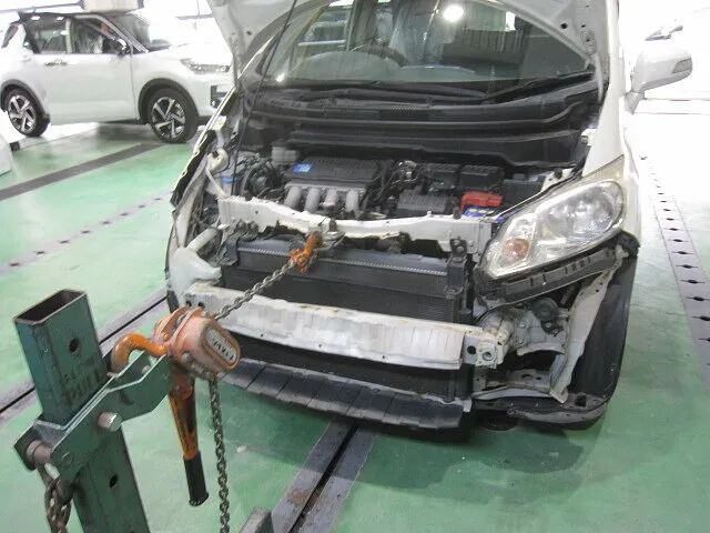 ホンダ N-WGN フロントバンパー・右フロントフェンダー・コアサポート 修正機 事故車修理 キズ・ヘコミ修理│大阪市平野区 鈑金塗装 保険修理