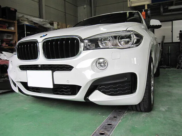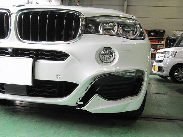 大阪市平野区にお住まいのお客様より、BMW X6のフロントバンパーのキズヘコミ修理のご依頼をいただきました。
