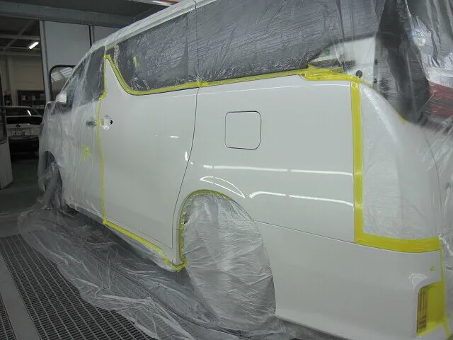 トヨタ アルファードの左リアドア・左クォーター・リアバンパーのキズヘコミ修理が完了いたしました。